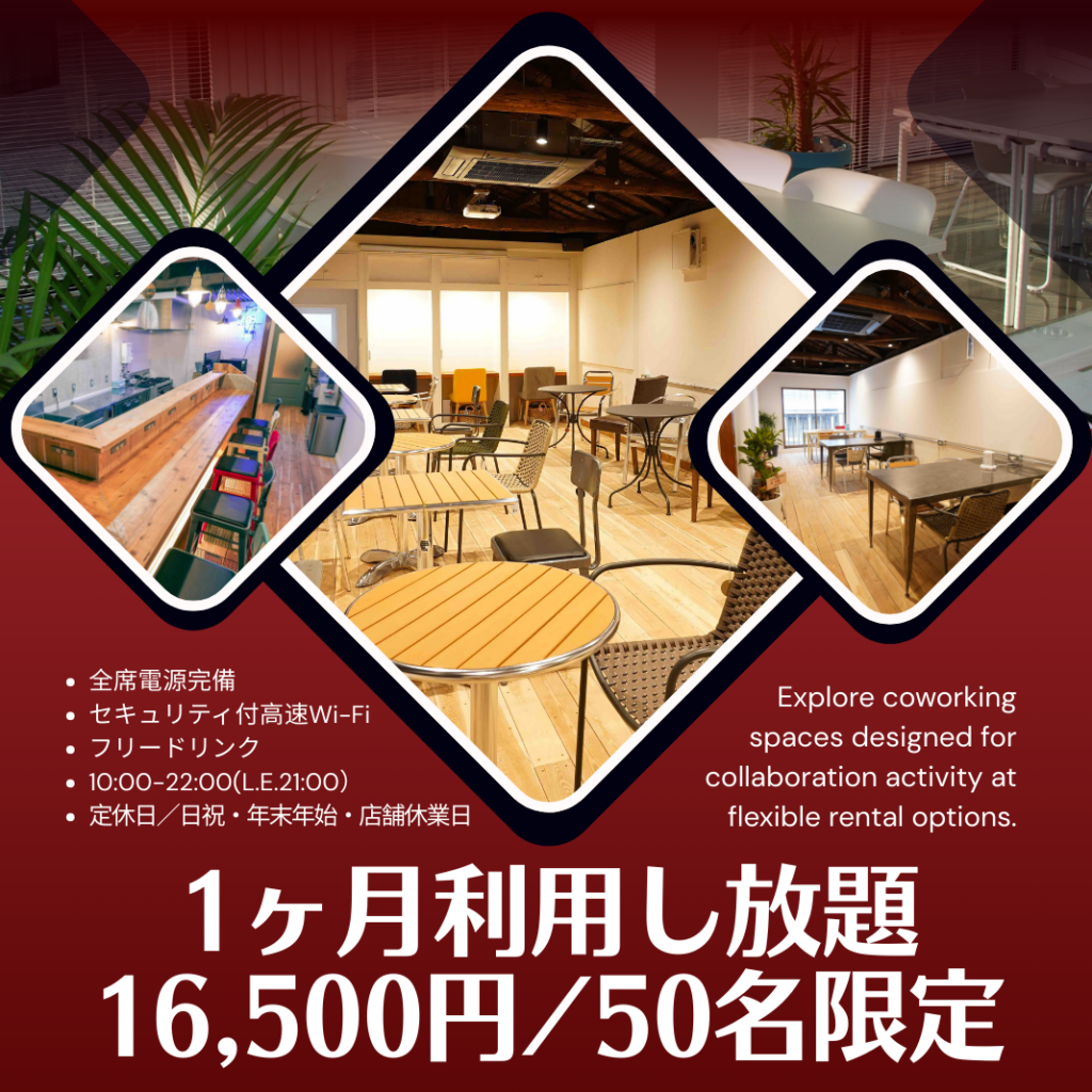 コンセントカフェでは、ヘビーユーザーのお客様や、セカンドオフィス、サードプレイスをお探しの方に、月額定期券を発売しております。月額16,500円で、利用可能時間内(店舗休業日・日祝・貸切営業日を除く)は利用し放題となります。